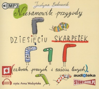 Niesamowite przygody dziesięciu skarpetek (czterech prawych i sześciu lewych) / Justyna Bednarek. - [Piaseczno] : Heraclon International. StoryBox.pl, [2017]. - 1 płyta audio (CD) (1 godz. 10 min) : zapis cyfrowy, stereo. ; 12 cm.