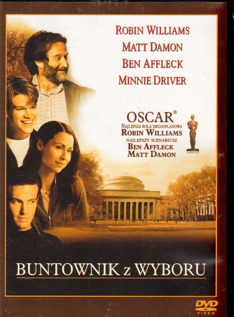 "Buntownik z wyboru" to wyróżniona 9 nominacjami do Oscara i Złotym Globem opowieść o konflikcie doświadczonego terapeuty (Robin Williams) i "skłóconego z życiem", wybitnie uzdolnionego młodego chłopaka (Matt Damon). Tytułowy Will Hunting nie ma większych ambicji, niewiele też oczekuje od życia. Wykonuje dorywcze prace fizyczne, a wieczorami włóczy się po okolicznych barach często wdając się w awantury. Zwrot w jego życiu następuje w dniu, kiedy nieoczekiwanie odkryte zostają jego wybitne uzdolnienia matematyczne, a on sam poznaje piękną studentkę. Will staje w obliczu pierwszego poważnego wyboru: musi zdecydować, czy nadal żyć będzie na pograniczu prawa, czy też podejmie rzucone mu wyzwanie i spróbuje zmienić swój stosunek do świata. W zmaganiach z samym sobą ma mu pomóc psycholog, który słynie z niekonwencjonalnych metod działania. Dochodzi do starcia dwóch silnych osobowości, które przynosi zaskakujące efekty... "Buntownik z wyboru" został entuzjastycznie przyjęty przez widzów i krytyków, którzy porównują go z "Młodymi gniewnymi" i "Stowarzyszeniem umarłych poetów". Film odniosł wielki sukces kasowy na ekranach kina amerykańskich, wpływy z jego wyświetlania już dziś przekraczają 80 mln. dolarów.